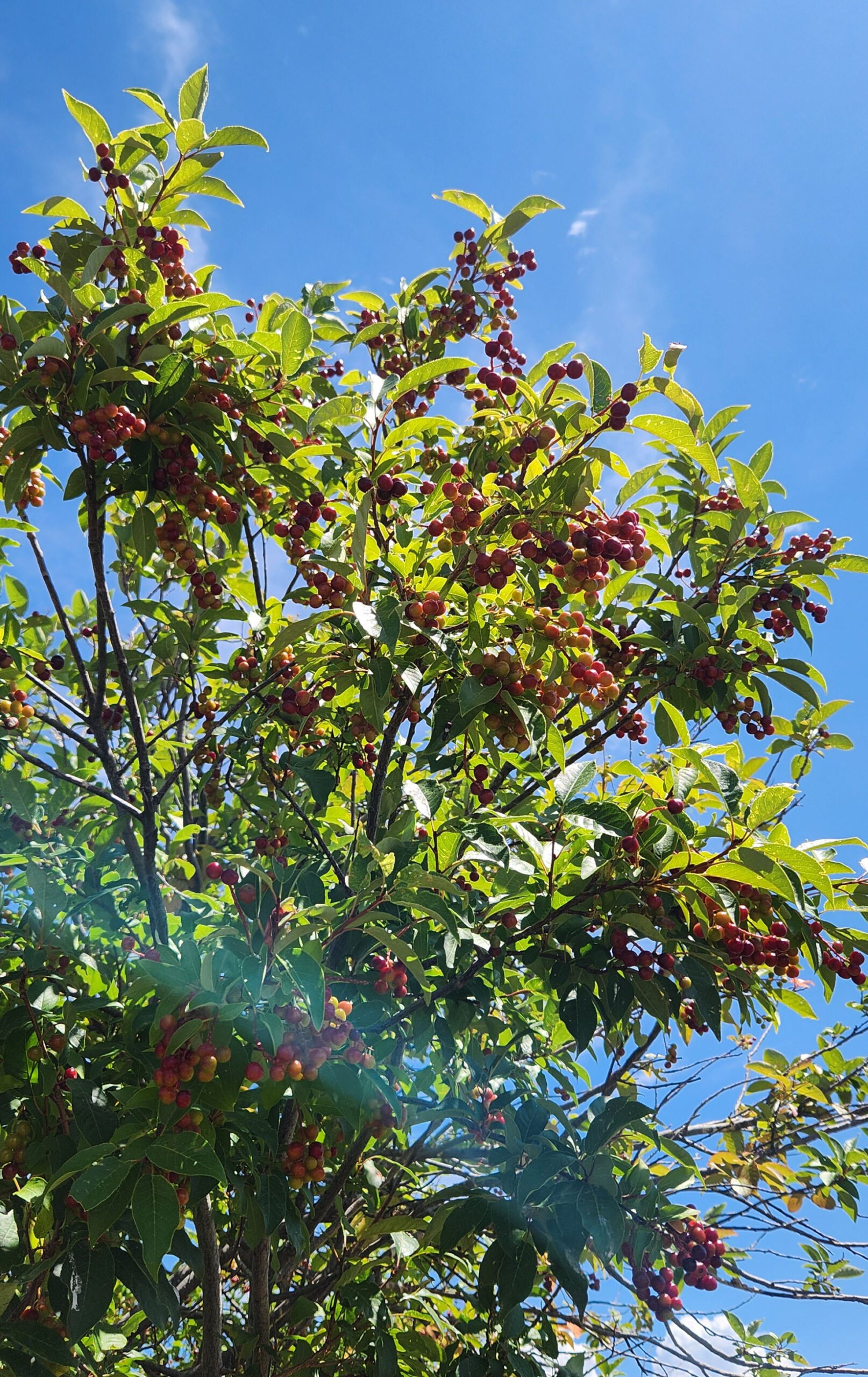 Chokecherry is a thicket-forming shrub that produces copious amounts of fruit in the late summer.